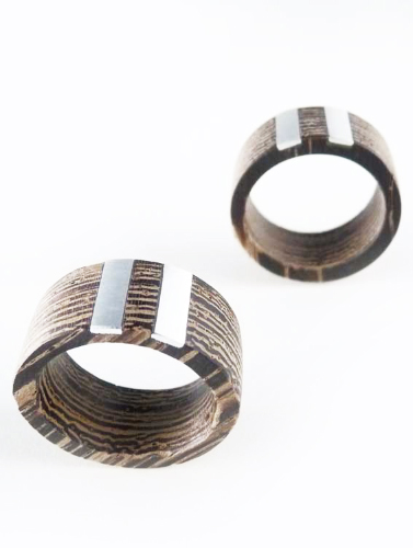 Las alianzas de Iñaki Salom siguen un marcado estilo minimalista, ángulos y líneas rectas que respiran aires arquitectónicos o industriales trabajados en oro amarillo, oro blanco, maderas nobles y diamantes.